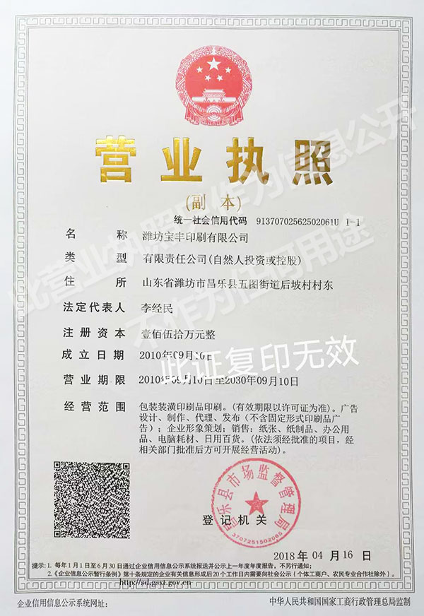 濰坊寶豐印刷有限公司助力客戶品牌提升,做有價值的包裝